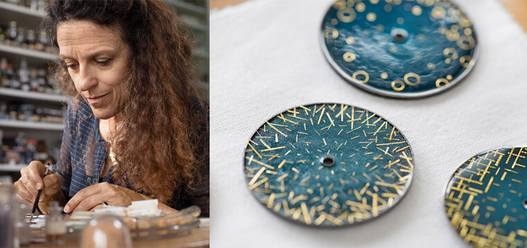 ▲Anita採用大明火金片琺瑯工藝自行創作出賞心悅目的面盤,三種樣式各有千秋,絕對都是獨一無二的珍貴工藝美品。