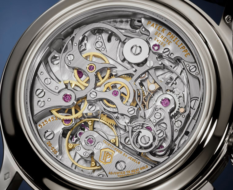 5370P搭載的機芯為CH 29系機芯首款躋身追針功能的作品,雙導柱輪、穩定的水平離合與手動上鍊都符合傳統高階計時碼錶的定位,加上離合輪的專利齒形、紅寶石軸承中的自調錘、帶凹槽的積分凸輪以及新設計的追針輪隔離器等,也都有助於強化機芯走時品質並延長機芯的使用年限。追針計時碼錶和一般計時碼錶相較,雖然只多了一根中央追針秒針,但其複雜度堪超越陀飛輪、次於三問之後;正是由於追針結構複雜,有能力製作的品牌不多,其價位向來也頗可觀,這在鉑金錶殼的5370身上再次獲得印證,也是PP在計時領域中最淋漓盡致的工藝結晶。