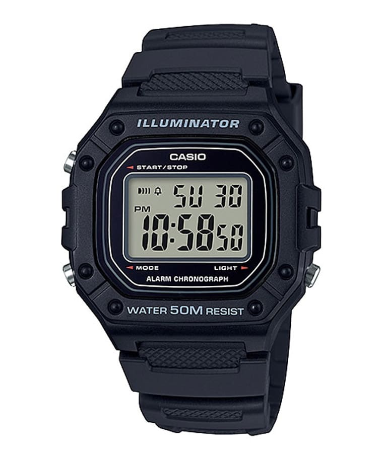 整只表仅37g左右的轻量,即使长时间佩戴也不会感到手上沉甸甸的不舒服。手表的功能包括1/100秒计时码表、闹铃、LED背光照明等,防水性能也有到50米。而且除了W-218H-1AV的基本黑色之外,卡西欧还推出蓝、绿/黑、黑/红、黑/橘等多色选择,让人可以随心所欲挑选想要的顏色。参考价:NT$ 840