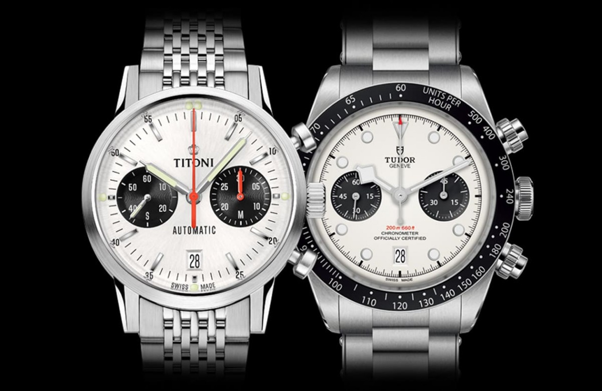 歷年來錶壇各家品牌推出過許許多多的計時碼錶作品,有一種設計大約從1960年代盛行至今熱度都未冷卻,那就是深受鐘錶愛好者追捧的”Panda Dial”熊貓面計時碼錶。這種白色面盤搭配黑色小錶盤的樣式約起緣於賽車錶方興未艾的年代,手錶品牌受到賽車場上黑白方格旗的啟發,將黑白配色引進計時碼錶面盤,一方面可以串連起賽車運動的印象,同時更重要的是這種白、黑分明的高對比配色讓佩戴者很容易判讀時間,由於這種白中有黑的組合讓人聯想起熊貓此一象徵和平團結的動物,使得「熊貓面」暱稱不脛而走,直到現在都還是計時碼錶作品中被認為經典不敗的設計。目前市場上擁有熊貓面設計的計時碼錶為數豐富,近期有兩款錶因為品牌口碑、品質、設計乃至價格都很有吸引力尤其受到錶迷關注,一款是TITONI梅花錶的Heritage傳承計時系列現代復古版,另一款則是TUDOR帝舵2021年改款後的Black Bay Chrono。