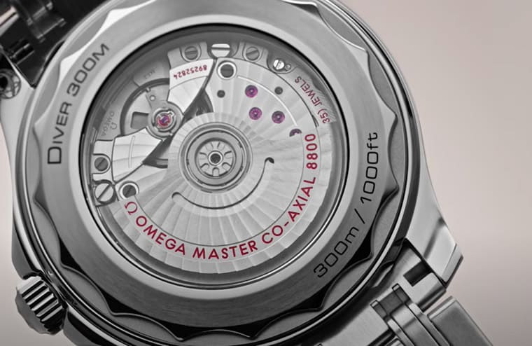 說到機芯,水鬼搭載的31或32系機芯品質有目共睹,但是綠海馬搭載的8800機芯同樣也有歐米茄自己的傲人特色,包括同軸擒縱設計,而且機芯零件中加入非鐵材質,成為它通過大師天文台認證的助力,這代表機芯的抗磁性能超過15,000高斯,光是這點就足以成為綠海馬的一個吸睛優點,更別提它是配置透明底蓋的潛水錶,錶主想看機芯可以隨時看。