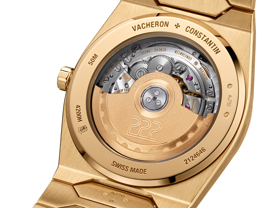 ▲搭载品牌自制的2455/2自动上链机芯,配备雕刻了原版222标识的专属摆陀。