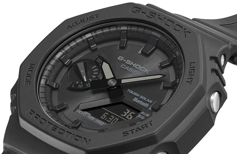 ▲GA-B2100面盤微妙的變化反映出手錶搭載的機芯升級為太陽能並倒入藍牙連線功能,使用便利性深度進化。