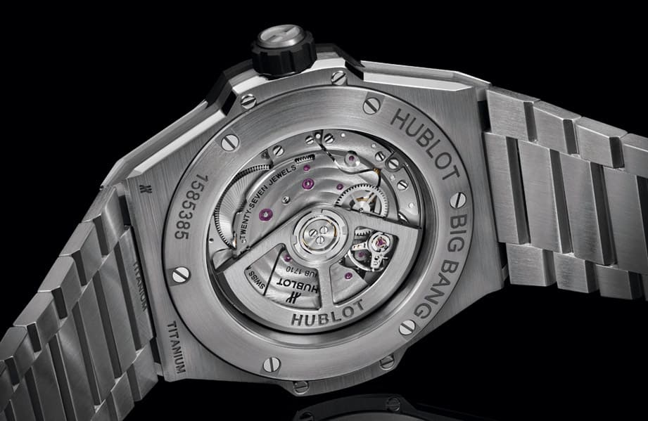 ▲HUB1710機芯為宇舶主力基礎三針作品,此次別開生面改用開面設計讓人可以一窺機芯正面結構,與錶背透明底蓋視野正反輝映,讓人一飽眼福。