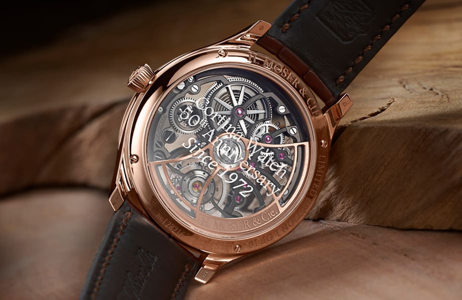 H. MOSER & CIE亨利慕時為了慶祝Cortina Watch高登鐘錶創立50週年,精心製作出一款Endeavour Cylindrical Tourbillon Skeleton勇創者圓柱陀飛輪鏤空紀念錶作為獻禮,錶款限量10只,供追求獨特性與工藝價值的收藏家一個別具意義的鎖定目標。
