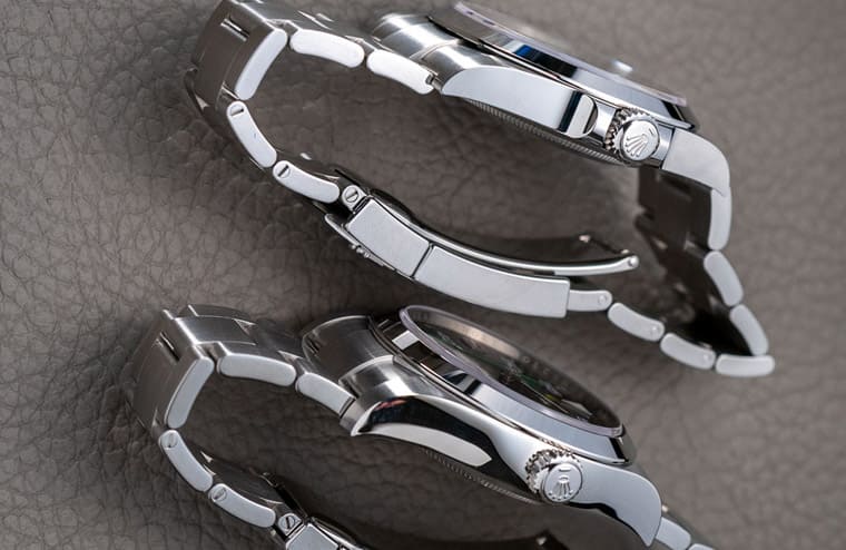 在分別摸過Air-King 126900和116900後,菊地先生認為後者的錶殼到錶耳線條都更為厚實,相較之下126900的錶殼厚度似乎顯得比較薄一些,他在實際測量後發現果不其然,116900的錶殼厚度約為13mm,而126900的厚度則降至約11mm,戴起來的舒適度也會產生微妙變化。至於126900還有個明顯的改造之處就在於增加了錶冠護肩,菊地先生補充道他看過有個說法指出Air-King在2022年改款後,成了勞力士採用拋光錶圈、無日期顯示的運動錶中首款加上錶冠護肩的作品(具備潛水機能的黑水鬼124060不算在內),他覺得勞力士可能也會趁機觀察市場對錶冠護肩的反應,未來或許也有機會導入Explorer I 或Milgauss等作品上。
