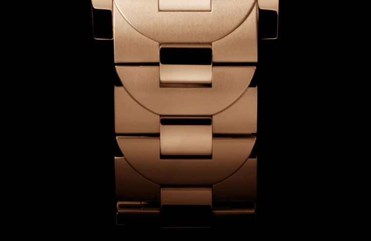 先前沛納海已嘗試在Luminor Due系列中採用Goldtech™紅金材質搭配皮革錶帶的組合,呈現出斯文又高雅的新奇感,至於此次改換Goldtech™紅金鍊帶的PAM01326,則又有一種運動場上貴公子的不同況味。Goldtech™紅金這種材質與一般紅金的差別在品牌於金屬成份中加入鉑金、並提高了銅的比例,前者有助於提升合金外觀的保護性,讓金屬光澤能長時間保持光亮,至於後者則可以進一步強化金屬的紅金色調,看起來會比一般紅金更偏紅一些。