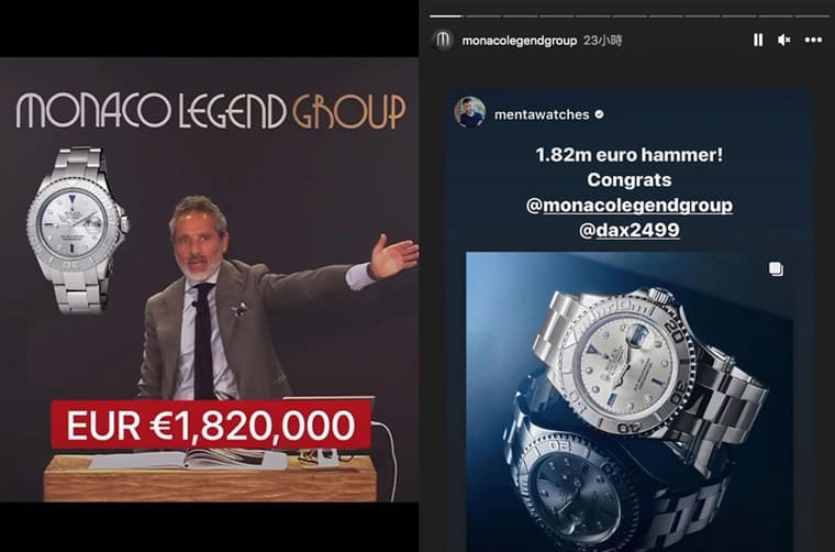 ▲外媒以及Monaco Legend Group已陆续转发手表得标的消息。Source:Instagram@ vertigo1983、monacolegendgroup