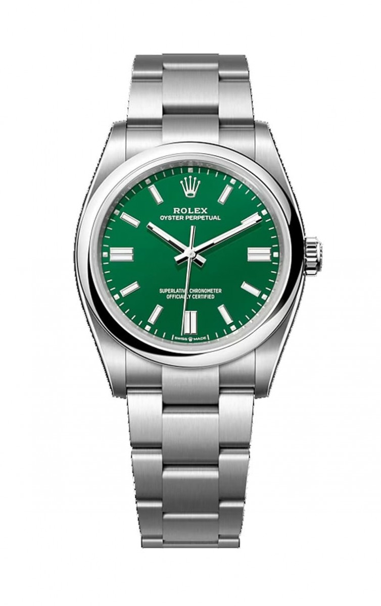 這款Oyster Perpetual搭載的機芯是3230,與2020當時同年改款的黑水鬼124060用的是同一枚機芯,代表它的走時精準度達到每日±2秒、動力儲存則有70小時之多,精準度比起COSC瑞士天文台認證更好,至於將近3日錬的動能主要的優勢在於手錶每逢錶主週五下班脫下後,直到下週一上班前都不需要重新上鍊,如果你週末出門還是習慣戴錶,70小時動能幾乎就能確保手錶不會自己停走,可見Oyster Perpetual 36mm雖然是一款入門的勞力士,但是實用性還是不在話下,在原本內在品質便已經紮實有料的情況下,勞力士當年主要靠著改變面盤設計便讓手錶嚐到走紅的滋味;比較可惜的是2022年起彩色漆面的款式有感縮減,目前剩下的選擇相對還是讓人覺得不夠(只有綠色是31mm、36mm與41mm都有的配色)。
