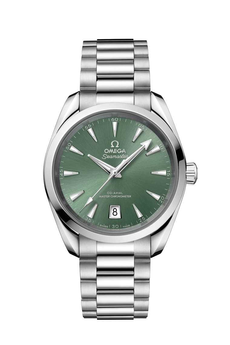 歐米茄新款Seamaster系列旗下的Aqua Terra近年也吹起彩色面盤風潮,這與市場對於彩色面盤的接受度愈來愈開放有關。38mm的Aqua Terra近期於不鏽鋼錶殼搭配不鏽鋼鍊帶的基礎架構下,一口氣推出大西洋藍色、砂岩色、月桂綠色、番紅花黃色、赤土色等五種顏色的黃銅亮漆面盤,歐米茄並於面盤施加中央太陽線紋磨砂圖案,賦予彩色面盤更多變的色澤層次效果,也散發出與系列前作同中求異的新意,本次以近年市場風行的綠色面盤款式為例。