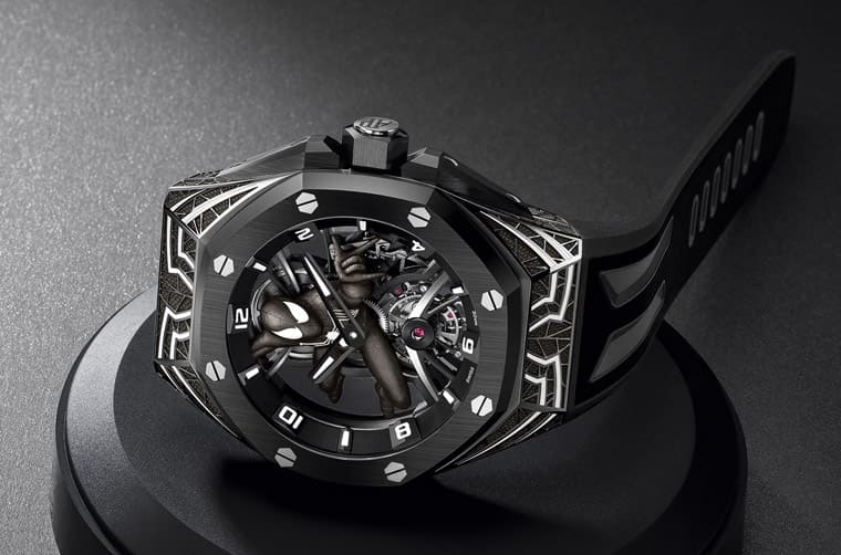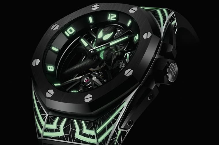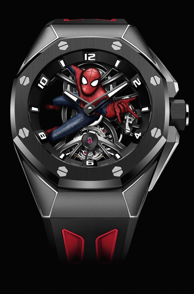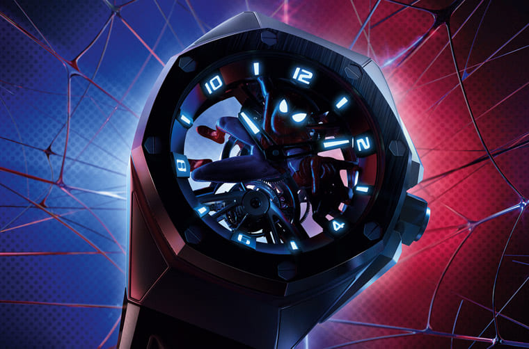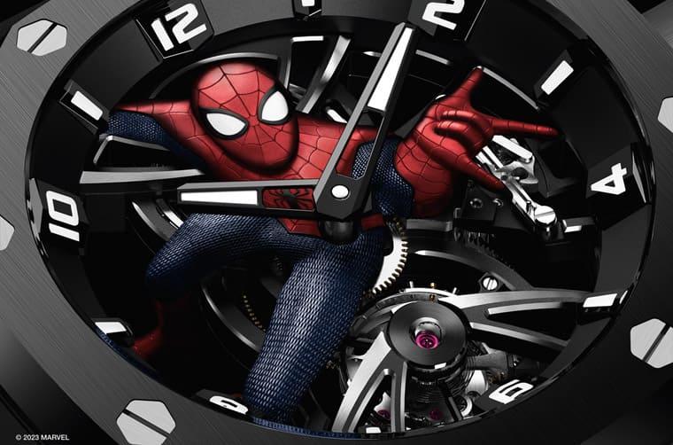 ▲愛彼繼2021年推出黑豹聯名錶後,2023年新增皇家橡樹概念系列「蜘蛛人」陀飛輪。