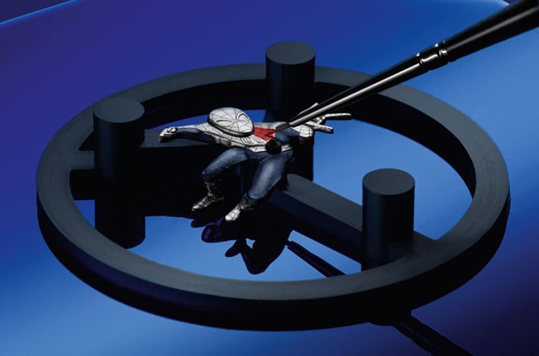 ▲愛彼用整片白金切割成蜘蛛人輪廓,後續再用雷射搭配手工進一步雕琢,同時還會經過手繪上色呈現角色生動感。