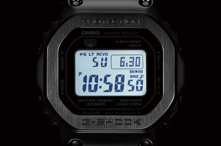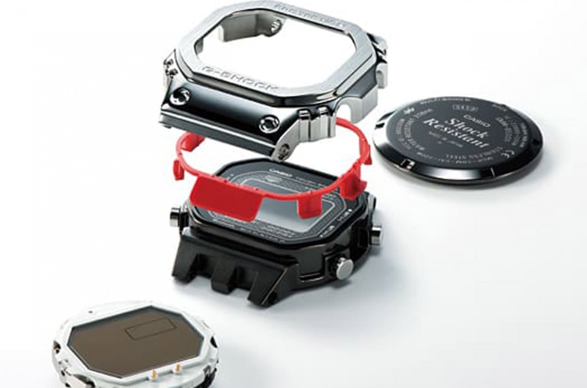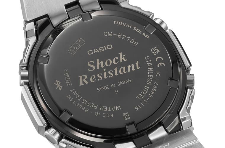 錶款與首款G-SHOCK擁有相同的旋入式底蓋設計,提供200米防水規格,而錶背經過DLC類鑽碳塗層處理後增加其金屬光澤感與抗磨,全系列更提供自動充電的Tough Solar太陽能電力系統,並將太陽能面板從玻璃改為高度加工薄膜式設計,液晶螢幕透過中央開口設計,抑制外部反光,並採用高對比與寬螢幕設計,隨時都能輕鬆閱讀時間資訊。