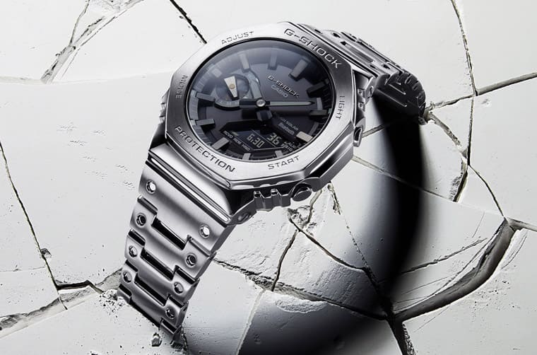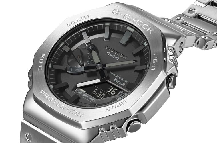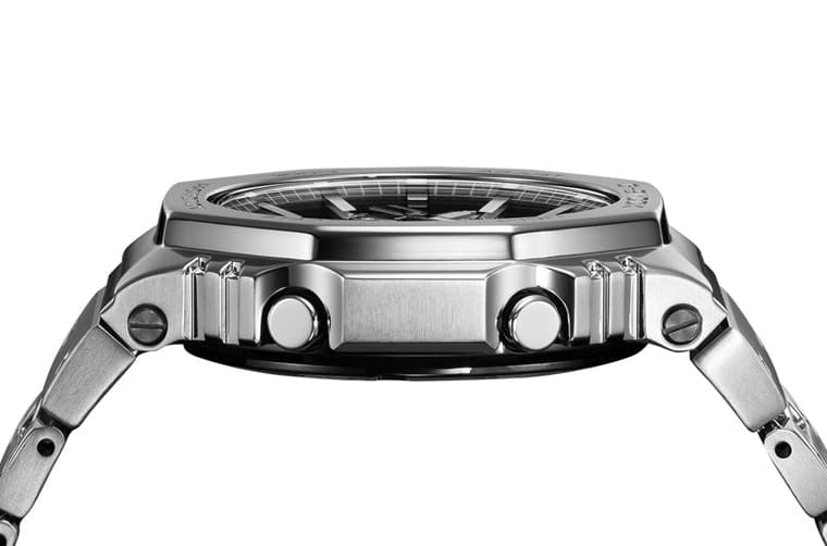 GM-B2100的錶殼採用不鏽鋼材質製作這是它最大的賣點,而且G-SHOCK自從GMW-B5000之後的金屬殼之所以愈來愈受歡迎、品牌也愈出愈多的原因就在於它的外觀加工讓人有高級錶的感受,尤其GM-B2100本身又帶有與高級運動錶有既視感的八角造型錶圈,經過不鏽鋼材質的詮釋、G-SHOCK的加工修飾後,更顯引人入勝的吸引力。