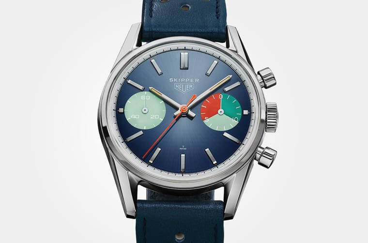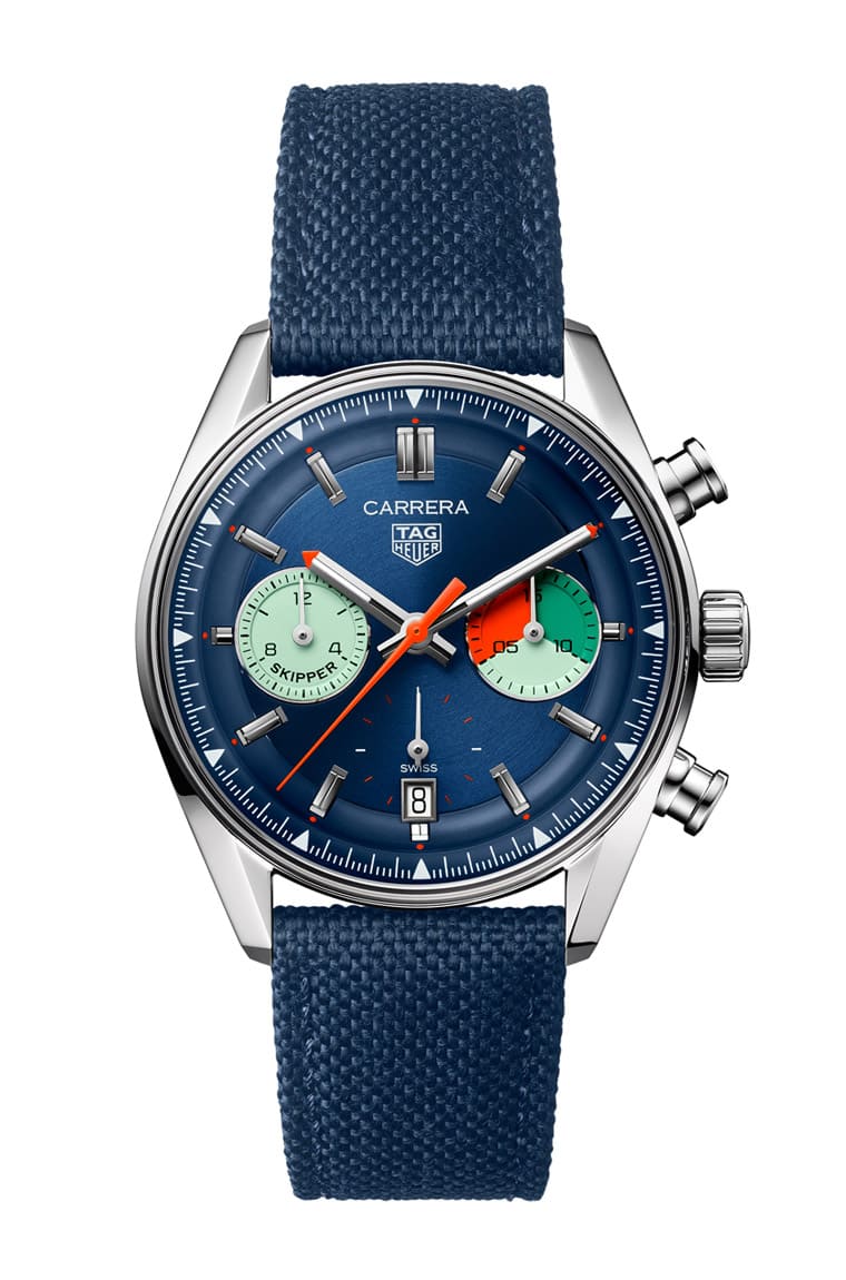 Carrera Skipper帆船計時碼錶以現代的Carrera Glassbox拱形計時碼錶為基礎,特色在於拱形藍寶石水晶鏡面直接延伸至錶殼邊緣取代傳統錶圈零件,如此一來手錶面盤上的資訊可以看得更清楚、減少閱讀時的死角。
