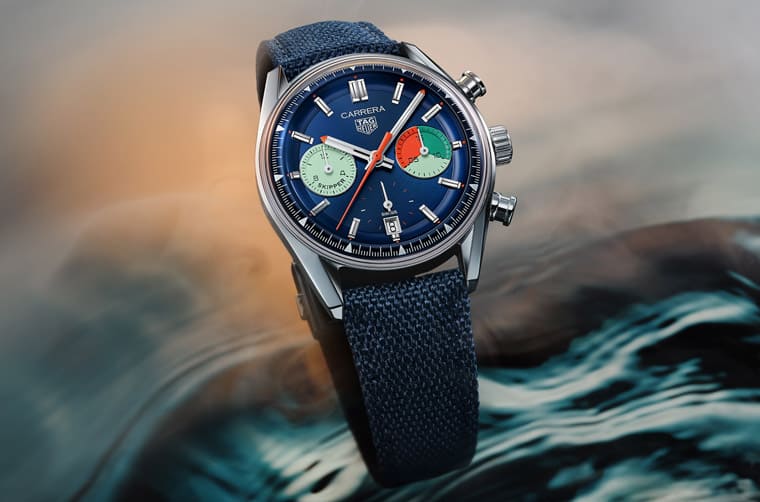 ▲手錶的面盤與小錶盤顏色與1960年代泰格豪雅贊助美洲盃帆船「無畏號」(Intrepid)的故事有關。