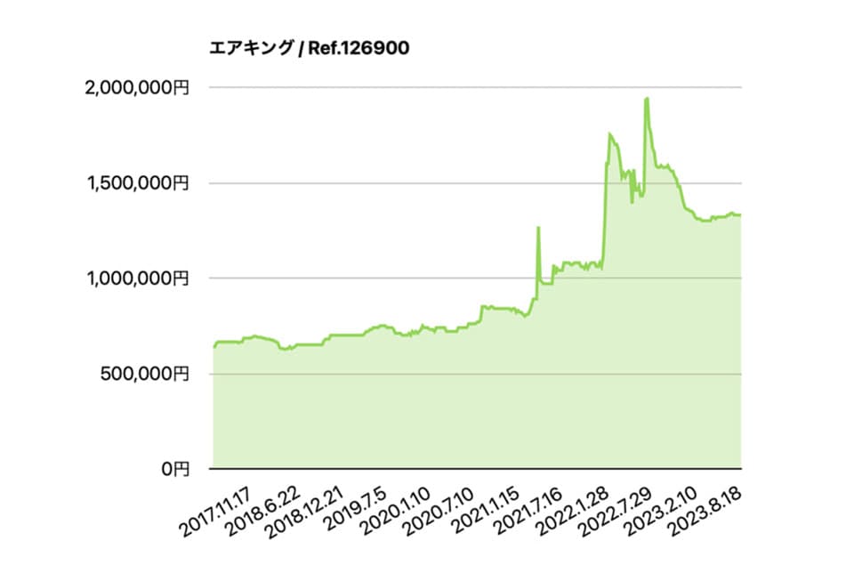 ▲Air-King 126900大概从2023年2月以后,它在日本二级市场价格走势就显得相对缓和、没有剧烈的起伏。Source:Power Watch