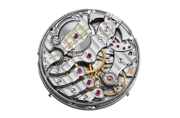 在手錶陶瓷底蓋下方的是2953手上鍊機芯,這枚機芯與傳統問錶不同的是融入愛彼與瑞士洛桑聯邦理工學院攜手開發的超問報時機制,當初雙方是想讓手錶的三問功能也能發出媲美懷錶的響亮樂音,所以他們前後花了八年時間,還從聲學原理著手,集結製錶師、技術員、學者及音樂家組成特別團隊,重新設計機芯與錶殼結構,達到超越傳統三問功能的報時聽覺享受。