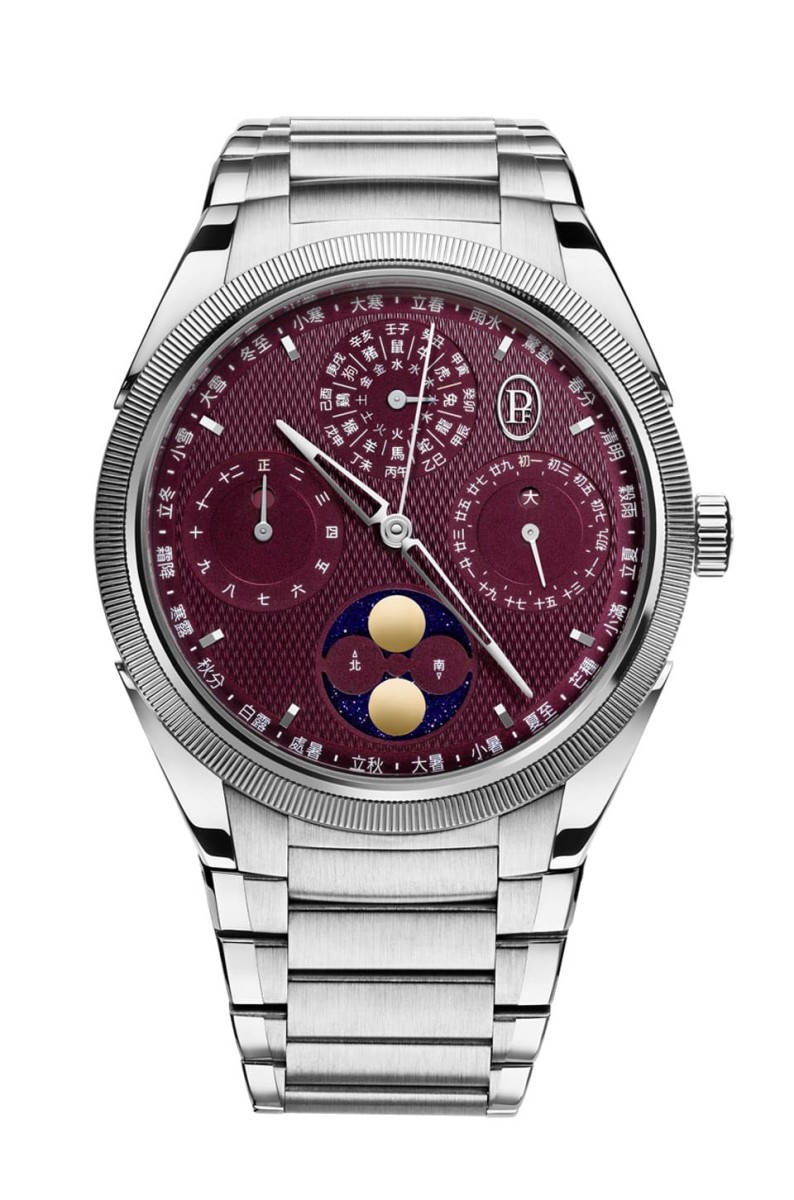 不鏽鋼、鉑金材質/PF008自動上鍊機芯/時、分顯示/中國傳統曆法顯示/月相顯示/藍寶石水晶鏡面、透明底蓋/防水100米/錶徑42mm/參考價:NT$ 2,147,000