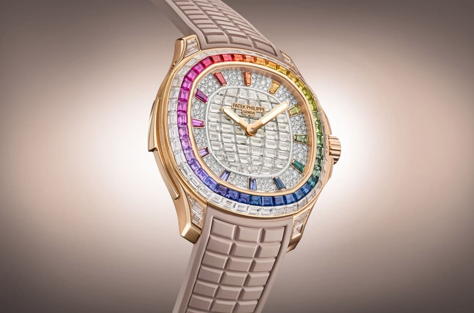 ▲Aquanaut系列2023出現第一款具備三問功能的作品,同時錶殼與面盤還鑲上大量彩色寶石與鑽石點綴。