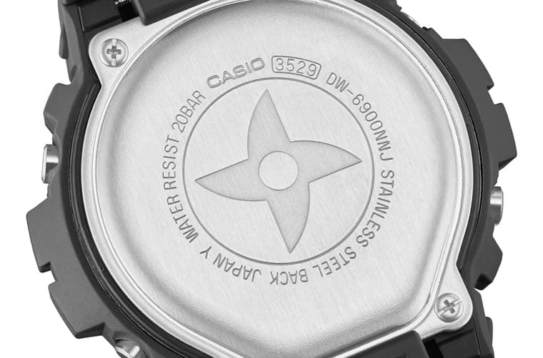 三款忍者主題作品都會在面盤、錶帶扣環與底蓋點綴象徵忍者之心——手裏劍的圖案,甚至連背光圖案(限DW-5600NNJ)也會呈現手裏劍圖案,強而有力地展現出引人入勝的主題精髓。
