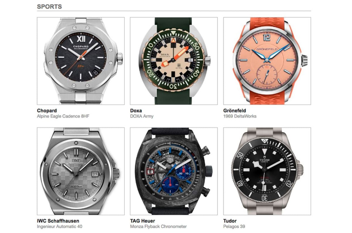 ▲2023年日內瓦鐘錶大賞將最佳潛水錶獎改制為最佳運動錶獎,入圍名單如上圖。