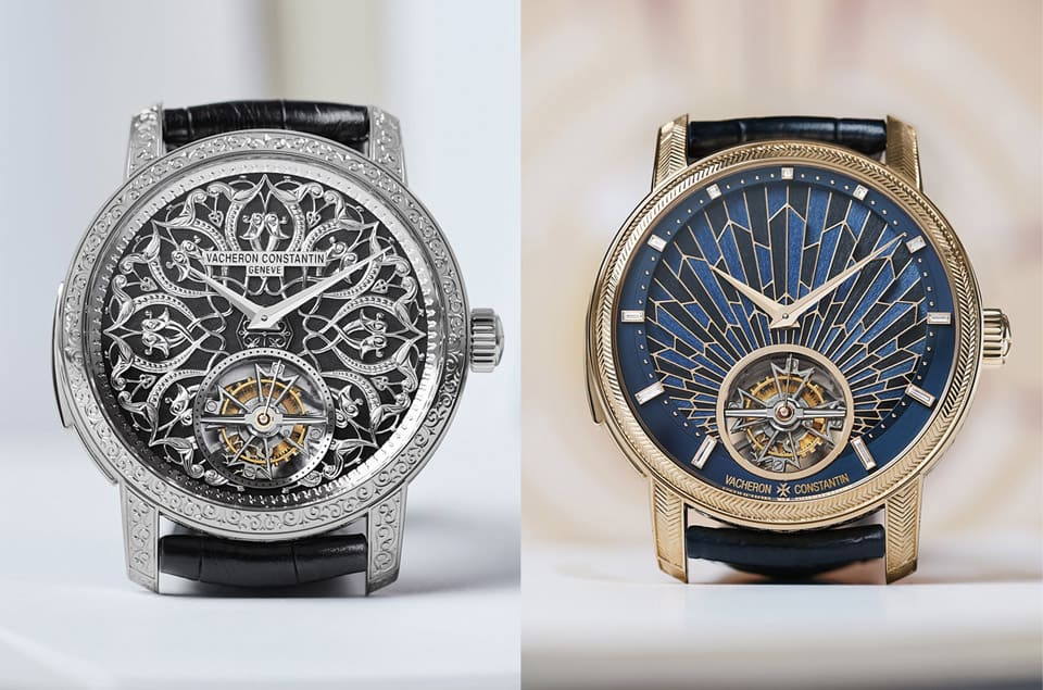 兩款錶都屬於Les Cabinotiers閣樓工匠”Récits de Voyages”主題時計,而且它們都僅各限量一只,超級稀有之餘,也象徵品牌放眼世界的開拓精神。手錶錶殼直徑皆為44毫米,其中一款以白金製成,另一款則是玫瑰金打造,它們的設計靈感分別來自阿布達比謝赫扎耶德大清真寺的裝飾圖紋,以及紐約克萊斯勒大廈的建築輪廓。江詩丹頓在面盤上以雕刻工藝向中東、美國自19世紀初延續至今的深厚淵源致敬,傳神展現二者藝術文化的精髓,品牌旗下的雕刻大師以手工替手錶雕飾出伊斯蘭風情濃厚的「蔓藤花紋」藝術紋理,以及別出心裁地融合了細木鑲嵌、寶石鑲嵌和手工雕刻工藝的裝飾藝術詮釋克萊斯勒大廈代表的現代都會風情。