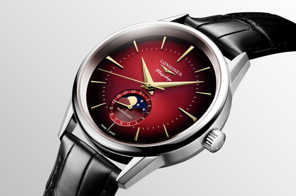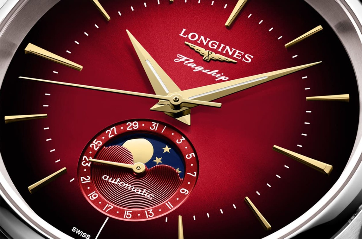 旗艦復刻系列龍年限定錶採用不鏽鋼材質,表示手錶的價格門檻不會難以高攀,從中顯見品牌希望可以讓更多人有機會入手一款獨具特色的生肖錶。錶款的尺寸不到40mm,很符合它外在斯斯文文的形象,浪琴表並替手錶配置黑色鱷魚皮錶帶,讓面盤的搶眼色調能進一步突顯。品牌這次亦開啟系列先例,將大中華地區過年過節不可少的應景顏色——紅色套用在手錶面盤上,而且紅色還呈現由中央到邊緣逐漸變深的漸層色澤,這種顏色是旗艦復刻系列過往未曾使用的,加上立體鑲貼時標與指針又都鍍上金色,徹底詮釋出農曆新年那種「一元復始,萬象更新」的濃濃賀歲感。