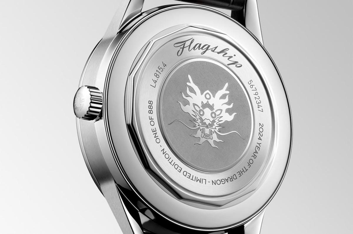 然而旗艦復刻系列龍年限定錶也並非只是改改面盤顏色如此簡單,浪琴表誠意邀請中國藝術家林子楠(Zinan Lam)操刀設計龍年生肖錶的專屬圖騰,並將圖案鐫刻在錶背的實底蓋上,因此只有在佩戴者脫下手錶露出底蓋上的龍年圖案以及底蓋周圍的相關介紹文字時,才會清楚展示出它的生肖錶身份。