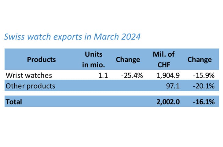 而且亞洲地區明顯下滑的可不只有中國,包括香港的出口額崩跌44%之多,新加坡也跌了14.8%,難怪亞洲市場的表現會倒回至4年前的程度;此外瑞士手錶於2024年3月的總出口量為110萬只,比起2023年同期也少了25%。