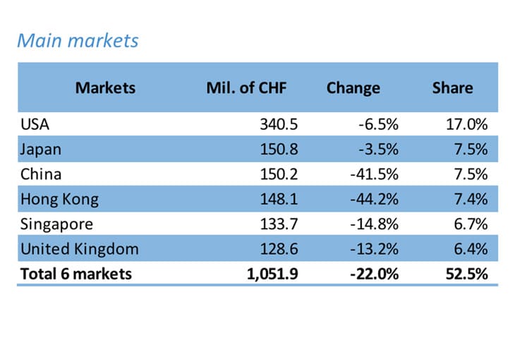Bertschy對於瑞士手錶主要市場之一的中國的擔憂並非無的放矢,因為根據FH的資料,2024年3月瑞士對中國市場的出口額同比大降了41.5%,這導致中國市場的佔比滑落到第三名,因此在瑞士手錶主要出口的亞洲市場部分受到中國市場明顯的下滑影響,導致其整體的出口水準甚至比新冠肺炎疫情開始大流行的2020年3月時表現還差。