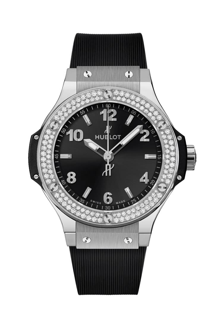 這只大爆炸的錶徑為38mm,不鏽鋼錶殼搭配黑色面盤、黑色橡膠錶帶,錶圈還鑲滿了鑽石,而且內部搭載的是石英機芯,佩戴者如果一段時間沒戴比較不用擔心手錶會停走,戴著這款大爆炸手錶出得廳堂,進得廚房,簡約又有型的風格讓現代女性會很享受戴著它的時光。