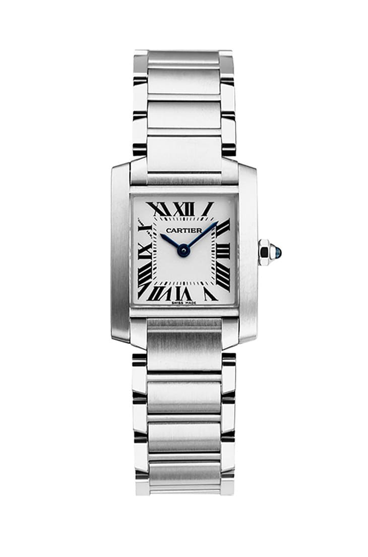 這款法國坦克也是石英機芯的款式,錶徑25mm相對小巧,但是女性佩戴相當適合。不鏽鋼錶殼和鍊帶與卡地亞珠寶的華麗風格相較相對低調,可是卻也更貼近母親們在生活中的模樣,佩戴時不需特別小心翼翼,可以戴著從事任何活動,面盤只有簡約的羅馬數字時標、刻度和藍鋼指針,不特別華麗卻顯得雋永深刻。