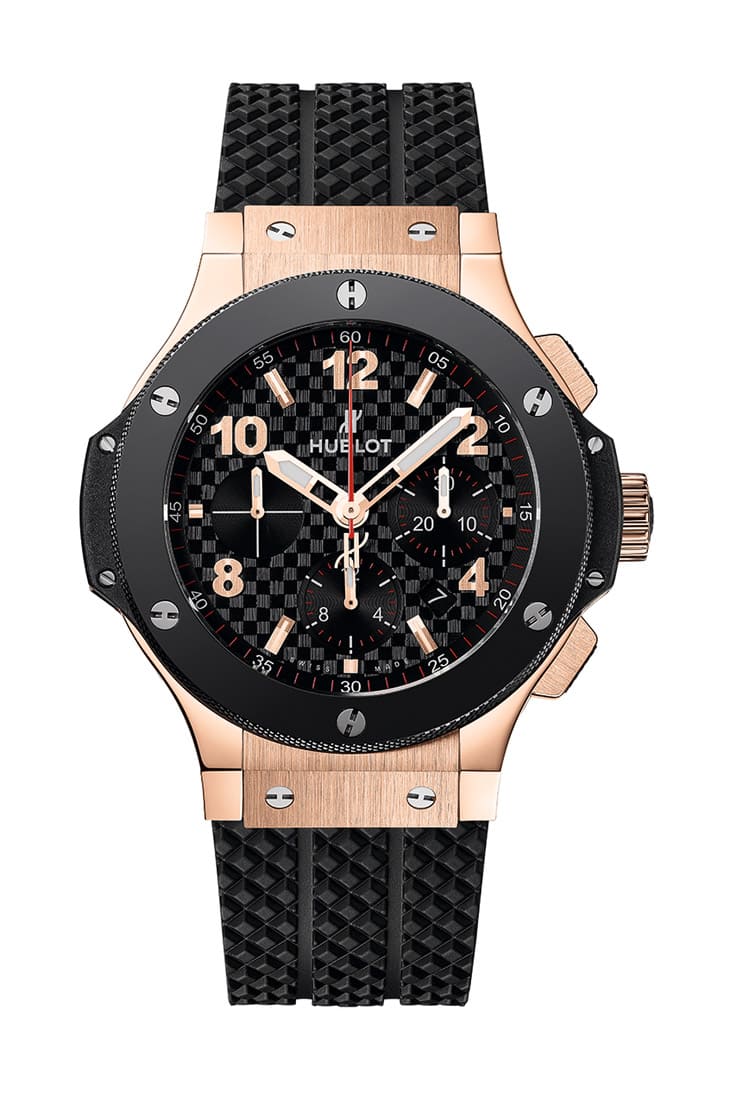 18K黃金、陶瓷材質/HUB4100自動上鍊機芯/時、分、小秒、日期顯示/計時碼錶功能/藍寶石水晶鏡面/防水100米/錶徑44mm/參考價:NT$ 1,016,000