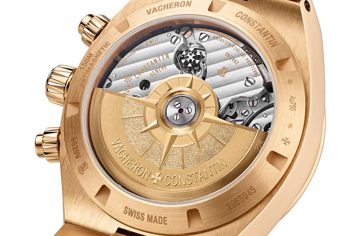Overseas當年大改款時除了外觀設計大幅修改之外,江詩丹頓針對部分款式導入近代研發的新世代機芯也是系列的一大重點。系列主力的5000系是品牌另行研發的基礎自動機芯,這個家族的定位是堅實耐操和高泛用性,跟過去品牌強調的賞玩取向稍有出入,但也更適合像Overseas這樣的日用實戴型錶款。5000系當時一推出就備齊了三種型號,其中5100是基本大三針,5300是小徑小三針,而這款搭載的5200則是用於計時功能。過往江詩丹頓的自動計時款式搭載的都是FP1185系統的機芯,這款品牌自製的5200同樣採用導柱輪和垂直離合機制,而且性能更強悍,例如震頻4Hz、動力儲存52小時,當然它也少不了獲得日內瓦印記認證,從機芯零件的作工到整體運作的品質等,都有符合這種高級錶定位的表現。