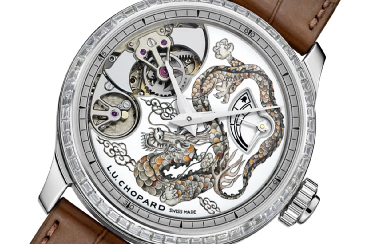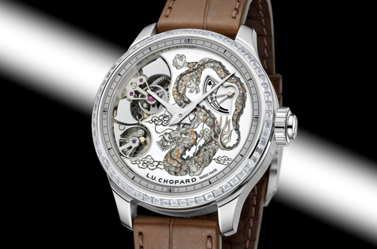 18K白金材質/L.U.C 08.01-L手動上鍊機芯/時、分顯示/自鳴功能/三問功能/錶圈鑲鑽約重2.74克拉/大明火琺瑯祥龍圖案面盤/日內瓦印記/藍寶石水晶鏡面、透明底蓋/錶徑42.5mm/限量1只/參考價:NT$ 16,559,000