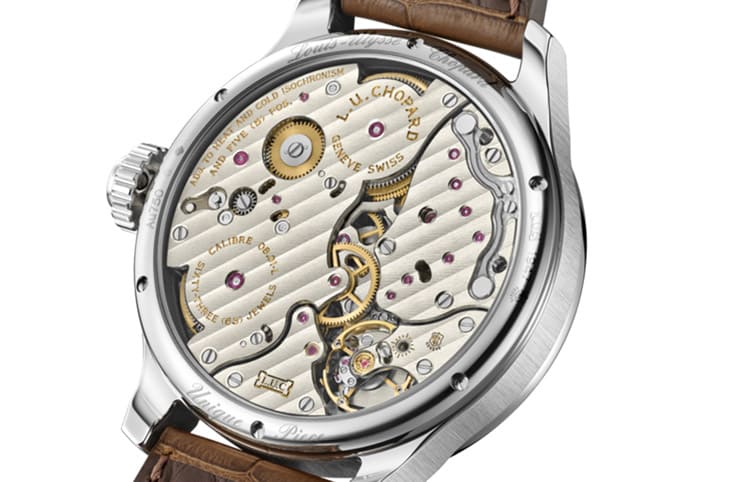L.U.C Full Strike「龍年」錶搭載的L.U.C 08.01-L手上鍊機芯將藍寶石水晶鏡面與報時機制中的音簧合為一體,製作過程中這個鏡面/音簧集合體是用整枚藍寶石水晶一體成型製成,代表兩者之間沒有依靠任何外力接合,因此它的報時樂音能展現出宏亮的鳴響效果。這枚機芯擁有許多專利,除了水晶音簧之外,機芯還具有報時按把離合系統,當報時組件啟動時,即使不小心按下報時按把,由於按把本身會於報時機制分離,所以並不會導致零件之間產生摩擦、錯亂,讓佩戴者更能安心享受手錶的頂級功能。