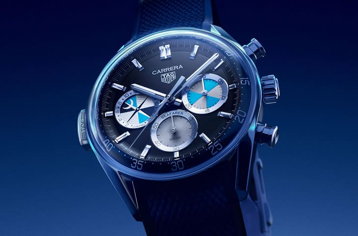TAG HEUER泰格豪雅再度攜手國外知名鐘錶媒體Hodinkee推出特別版Carrera Chronograph Seafarer x Hodinkee。資深一點的錶迷一看這款錶應該會想到經典的ABERCROMBIE & FITCH Seafarer手錶,因為Hodinkee的手錶專家們在創作過程中回溯了泰格豪雅1950~1970年代替美國休閒服飾品牌ABERCROMBIE & FITCH打造的手錶,早期A&F也是泰格豪雅的經銷商之一,因此像是古董錶型號2444C就屬於雙方聯名的作品,還記得在2444C的面盤上還能找到A&F的Logo,這款已經許久不見的作品在2024年奠基於Carrera系列重新回歸,讓人回憶起過去品牌代表作的風采。