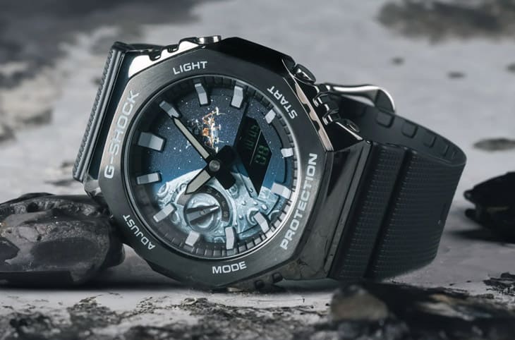 改裝後的IFL Watches × Fratello CasiOak “Moonlander”奠基於GM-2100BB-1A之外,他們決定採用月球為設計主題,向人類在1969年7月首度登月屆滿55週年致敬。雖然真要追本溯源,在阿波羅11號任務那個年代裡,G-SHOCK甚至還沒誕生,不過反而是在1980年代末期,當太空競賽時期早已經結束一段時間,一些比較新潮的太空人反而會戴著G-SHOCK搭乘太空梭、登上國際太空站,因此用G-SHOCK手錶來詮釋月球這種和太空有關的主題,廣義來說還是找得到關聯。