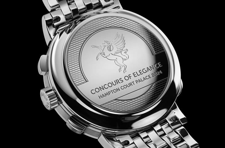 ▲軍官式底蓋上頭刻有《Concours of Elegance》古董車展的標誌,展現手錶拍賣前會在這項展覽中首度亮相的淵源。