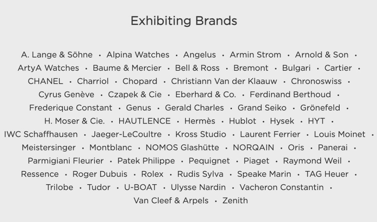 ▲2025年Watches & Wonders Geneva參展品牌名單。