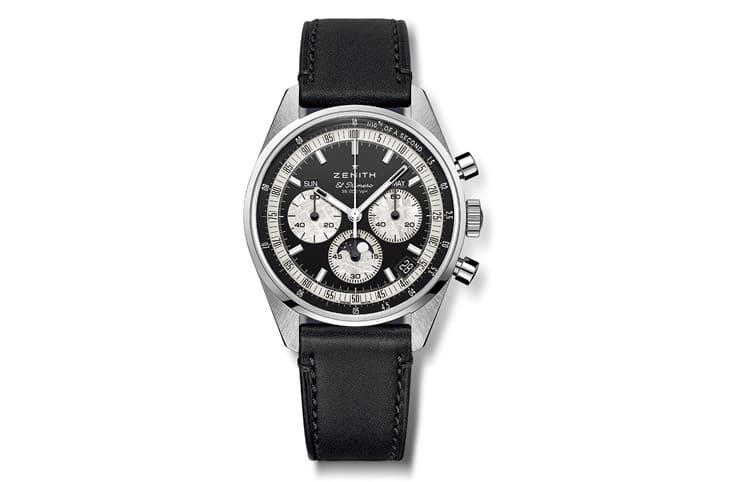 錶款以不鏽鋼製作,搭配黑色面盤,並且有不鏽鋼鍊帶以及黑色小牛皮錶帶展現同中求異的風格,Hodinkee和真力時討論後針對手錶細節做出不少調整,例如將鍍金計時指針改成白色、時標採鍍銠處理、月相盤也以黑色呈現——黑色月相過去在Chronomaster Original全日曆月相計時碼錶幾乎聞所未聞,剛好和面盤整體的顏色連成一氣。