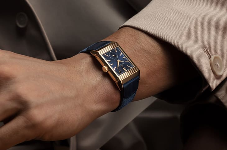 ▲積家近期一口氣發表三款功能各異的Reverso手錶,經典矩形翻轉錶殼佩戴在手上顯得優雅有型。