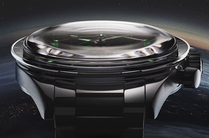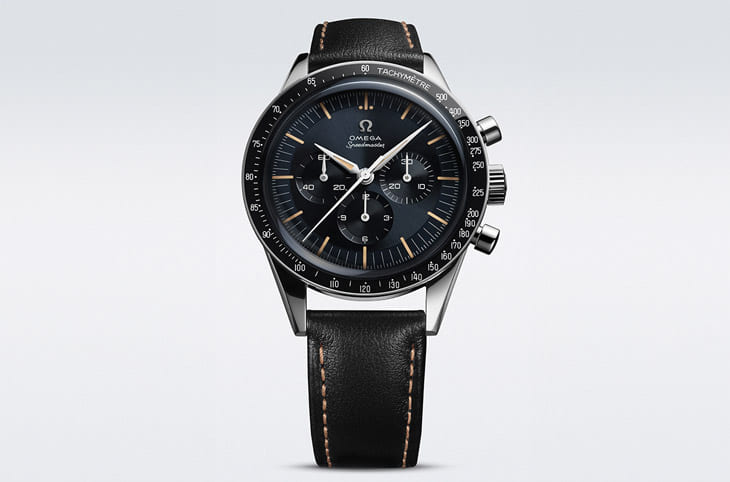歐米茄新推出的超霸週年版系列The First OMEGA in Space一如既往採用不鏽鋼材質,錶徑也維持在39.7mm這樣的經典尺寸,同時錶殼也經過拋光與拉絲等雙重處理,至於計時按把、錶冠造型等則是於1959年的初代作品一脈相承。新款配上黑色鋁圈,有別於2018年復刻把錶圈改成了脈搏計刻度,這回品牌再度將刻度換回原汁原味的測速計,可以想見超霸系列招牌的「數字90上方圓點標誌」設計也會跟著一起回歸。