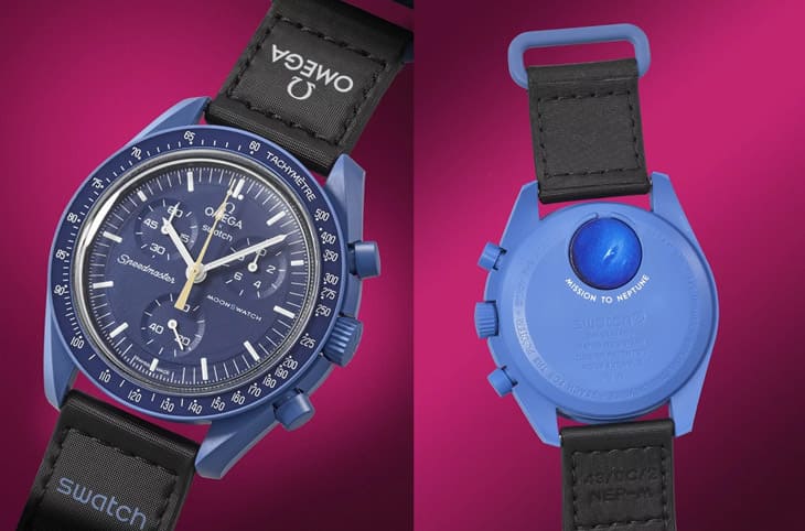 ▲第100萬只MoonSwatch為海王星主題,因此它的生物陶瓷錶殼是藍色,錶背的電池蓋圖案也是海王星。Source:Time+Tide Watches