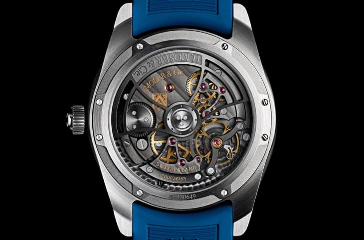 開拓者逆跳秒針手錶搭載HMC 250自動機芯。其以亨利慕時研發的HMC 201機芯為基礎,並倒入擅長研發逆跳機制的Agenhor SA所設計的模組。跨廠合作下打造出一款實用、高效又具視覺魅力的作品,既能展現亨利慕時想呈現的創新複雜功能,又同步保留了品牌一貫的優雅與簡約風格。