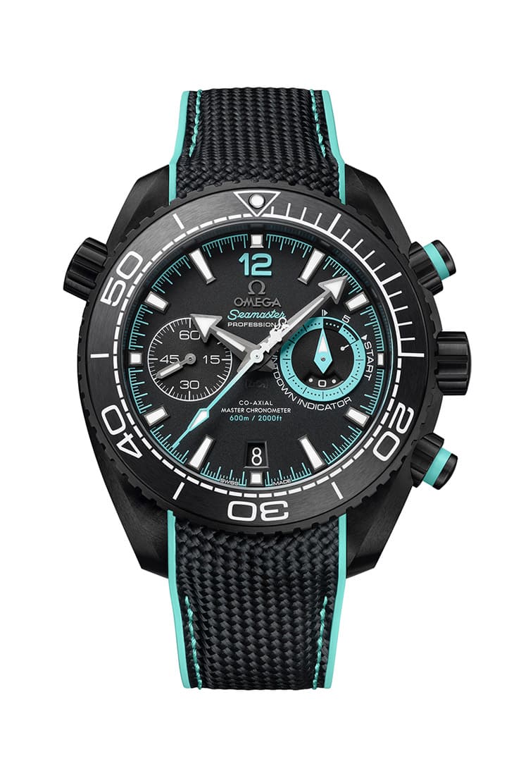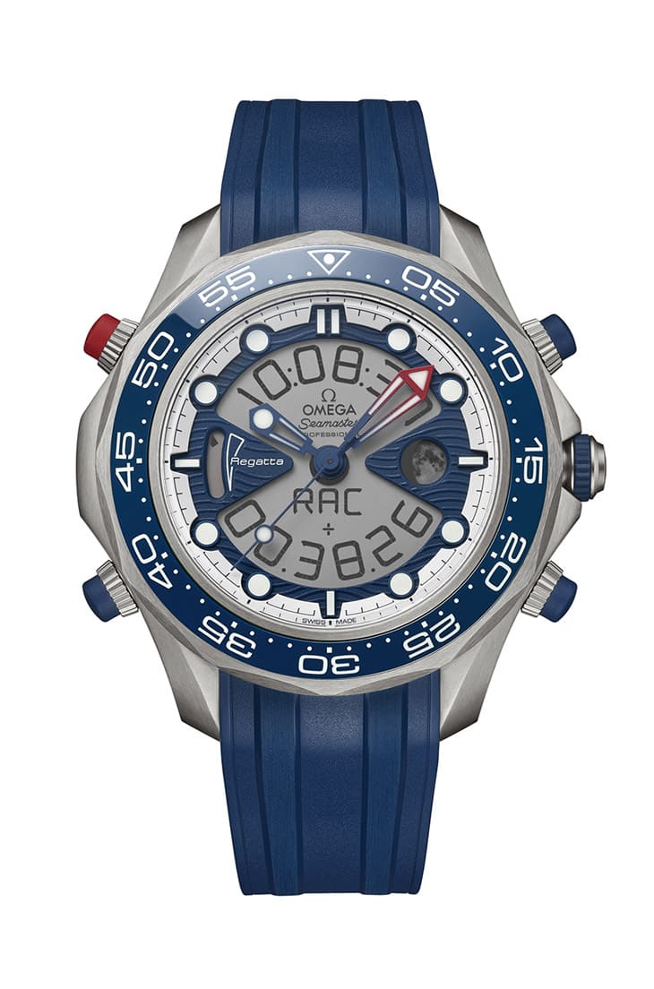 為了迎接第37屆美洲盃帆船賽,歐米茄從2023年便開始「超前部署」,先是在距今約一年前發表為阿聯酋航空紐西蘭隊打造的最新聯名錶,其以海馬Planet Ocean為基礎,黑色陶瓷錶殼、面盤搭配源自船隊帆船的綠松石色細節(如12點時標、計時大秒針與倒數計時功能小錶盤刻度等),並於黑色實底蓋刻上阿聯酋航空紐西蘭隊的標誌表達特殊的聯名意涵。此外品牌亦在本屆美洲盃帆船賽開戰後新推出屬於「儀表」的海馬Regatta腕錶,其內部搭載的多功能石英機芯5701呈現類比和數位雙重顯示效果,具備月相、計時功能、航海日誌及其他與帆船賽相關的強大功能,鈦金屬錶殼融入呼應美洲盃帆船賽標誌的藍、紅色細節,盡顯腕錶和海洋的淵源。