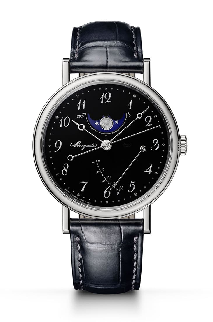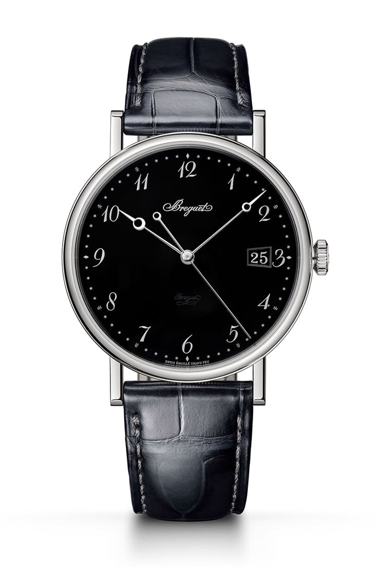 寶璣以鉑金製作出兩款Classique手錶的錢幣紋錶殼、錶耳、錶圈和錶冠等零件,不說你可能沒意識到,原來品牌還是第一次用鉑金創作Classique手錶,里程碑式的意義不言而喻。Classique 5177和Classique 7787的錶徑分別為38mm和39mm,前者由於功能較簡單,因此錶殼厚度為8.8mm,後者則是伴隨功能較複雜而堆高機芯厚度,連帶使錶殼厚度增為10.3mm。寶璣替兩款錶配置黑色鱷魚皮錶帶,以深色和淺色對比烘托出錶殼材質的晶亮感,同時也先一步帶出手錶面盤的深邃色澤。