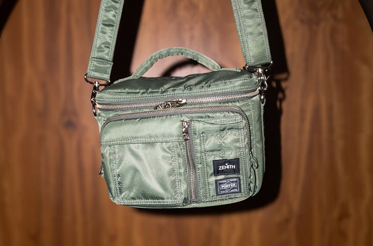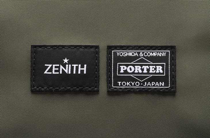 ▲PORTER為ZENITH特製一款綠色斜揹包,內含錶盒,包款外除了有吉田包布標,也加入了真力時的品牌標誌。
