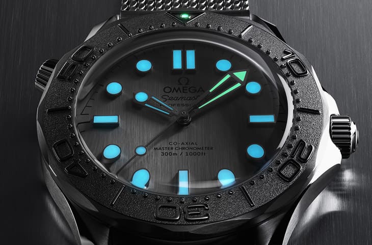 歐米茄推出了最新的海馬潛水300米,手錶一現身,大家馬上就能和丹尼爾克雷格在奧運期間戴的神祕錶連結在一起,這款錶第一眼印象和同系列的「龐德電影60週年紀念款(藍面)」似曾相識,OMEGA確實是奠基於那款特別版延伸出一般市售版,有幾點是這款錶和007特別版共同擁有的特徵,例如42mm不鏽鋼錶殼、圓弧形藍寶石水晶鏡面、面盤採用回到海馬潛水300米剛出道時期的細密波浪紋,再來就是米蘭鍊帶等,不過新款的鋁質錶圈和面盤都改成了潛水錶標準的黑色,而錶圈12點方向也改回倒三角形標記而不是數字60,當然錶背透明底蓋上也不再有利用摩爾波紋原理設計的007電影開場動畫圖案。